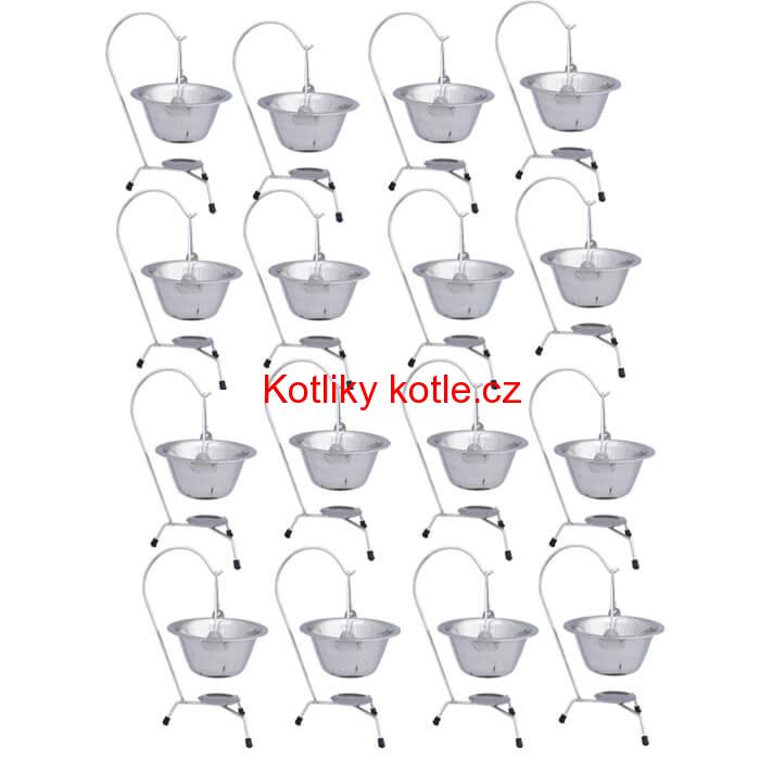 Servírovací sada obsahuje 16 kusů servírovacích nerezových kotlíků, 16 kusů závěsných stojanů na servírovací kotlíky.